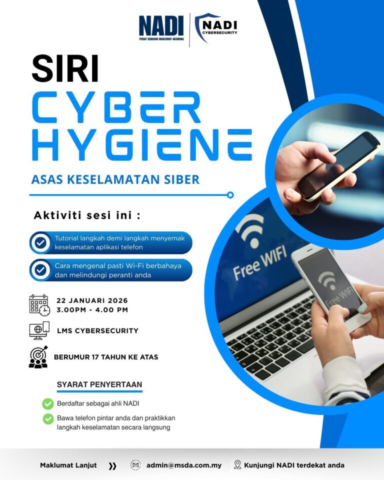 📣 [WEBINAR JANUARI 2026 NADI x CYBERSECURITY]ANCAMAN SIBER DALAM DUNIA DIGITAL Ayuh mulakan tahun 2026 dengan langkah yang bermakna melalui penyertaan dalam webinar pertama kami yang memfokuskan kepada ancaman siber dalam dunia digital. Pihak kami amat mengalu-alukan penyertaan para peserta […]