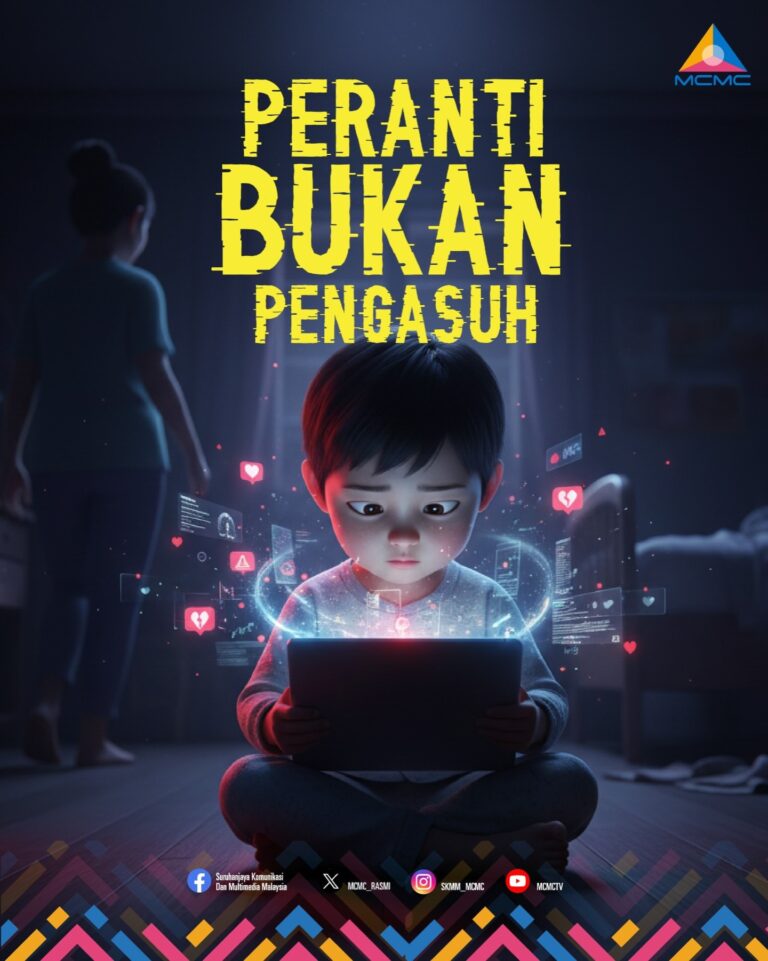 Tanpa pemantauan dan bimbingan, anak-anak mudah terdedah kepada kandungan memudaratkan dan risiko dalam talian. Luangkan masa, tetapkan had penggunaan dan sentiasa peka kerana kehadiran anda lebih penting daripada skrin di tangan mereka. #MCMC #KempenInternetSelamat