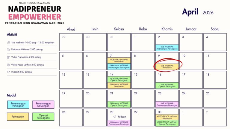 π’ JEMPUTAN WEBINAR PERCUMA LIVE WEBINAR 8 (PEMASARAN)π Tarikh: 9 April 2026 (Khamis)β° Masa: 10.00 β 12.00 tengahariPerak, Perlis, Pulau Pinang, Sabah, Sarawak, Selangor, Terengganu,W.P. Kuala Lumpur, W.P. Labuan, W.P. Putrajaya π©βπ« Tenaga Pengajar: Rozita Halina Rosliπ€ Host: SSO Usahawanπ […]