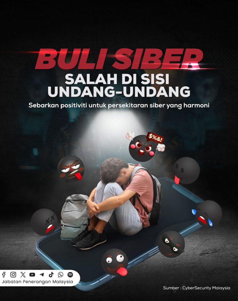 Buli siber boleh merosakkan emosi, fizikal & mental. Mari jadikan internet tempat yang selamat! #RancakkanMADANI#MADANIBekerja#TaatSetia#JabatanPenerangan