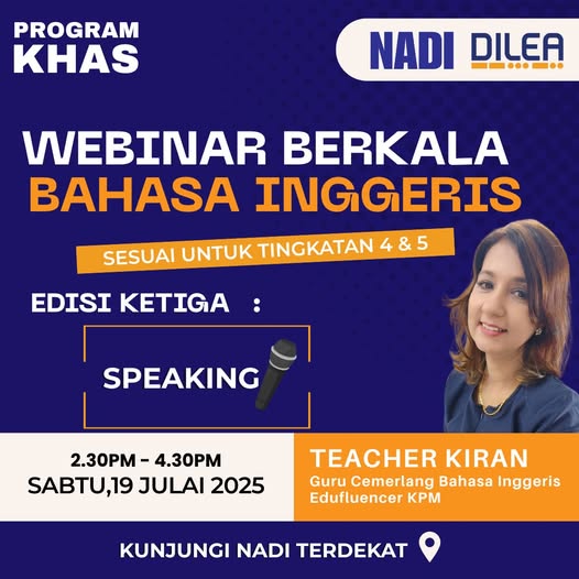 Webinar Bahasa Inggeris PERCUMA untuk Pelajar Tingkatan 4 & 5! Jom tingkatkan penguasaan Bahasa Inggeris anda! Webinar Berkala Bahasa Inggeris Edisi ke-3 dibawa khas untuk anda. Tarikh: 19 Julai 2025 (Sabtu) Waktu: 2.30 PM – 4.30 PM Lokasi: Pusat NADI berdekatan anda […]