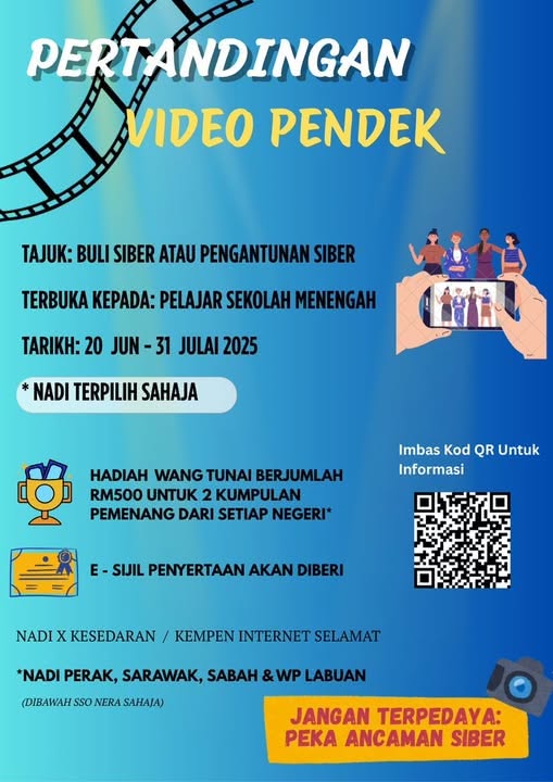 PERTANDINGAN VIDEO PENDEK: Buli Siber atau Pengantunan Siber Adakah anda pelajar sekolah menengah yang kreatif dan berani bersuara? Kini peluang anda untuk tampil dan menyebarkan kesedaran melalui karya video! Sertai Pertandingan Video Pendek anjuran Nadi X Kesedaran / Kempen Internet Selamat […]