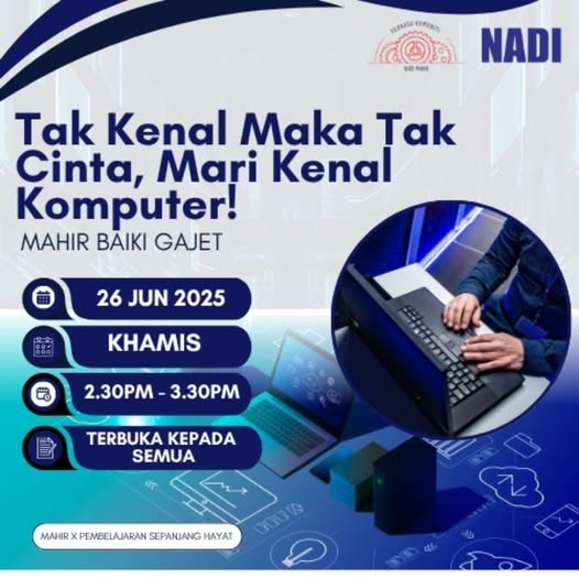 ๐ข KELAS SHORT LEARNING SERIES (SLS) NADI MAHIR๐ฉ๐ปโ๐ซ MAHIR BAIKI GAJET: Tak Kenal Maka Tak Cinta โ Jom Kenal Komputer!๐๏ธ 26 Jun 2025 (Khamis)โฐ 2.30 โ 3.30 PM๐ Siaran Langsung di YouTube Mahir๐ _link akan diberi pada 23 June_Jom Sertai […]
