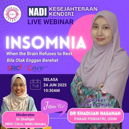 WEBINAR ISTIMEWA STUDIO SIHAT X MRIC Clinic MMU MELAKA | W060 Dengan kerjasama Majlis Perwakilan Pelajar & Unit CaRE, MMU Melaka INSOMNIA: Bila Otak Enggan Berehatโฆ Adakah anda antara ribuan rakyat Malaysia yang susah tidur malam, walau badan penat dan […]