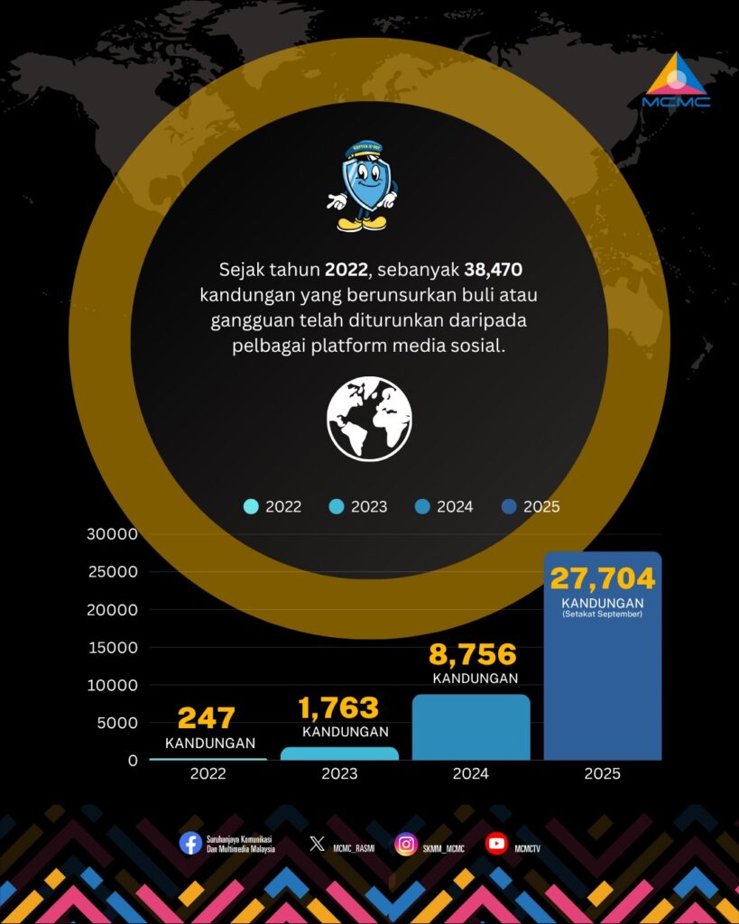 Sejak 2022, sebanyak 38,470 kandungan berunsur buli dan gangguan telah diturunkan daripada pelbagai platform media sosial.