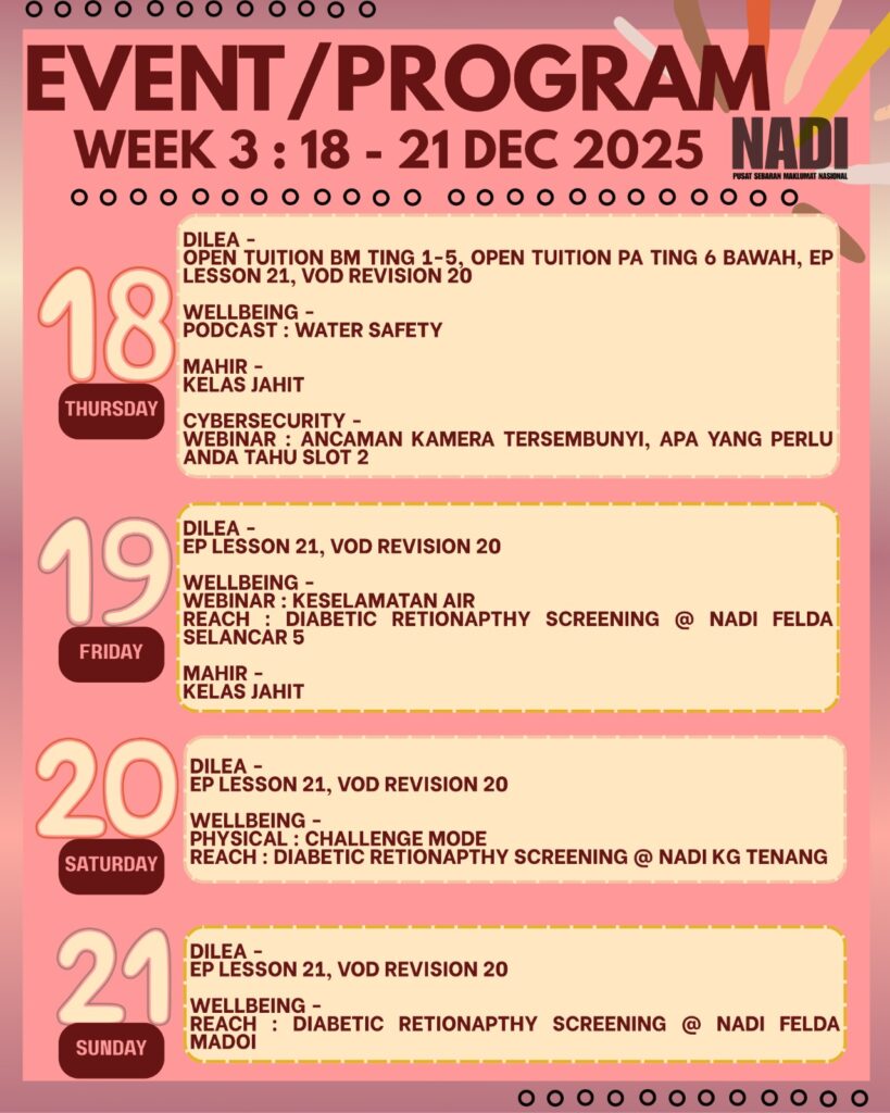 NADI Week 3 (18β21 Dis 2025) turun dengan program yang terus βkenaβ pada komuniti: