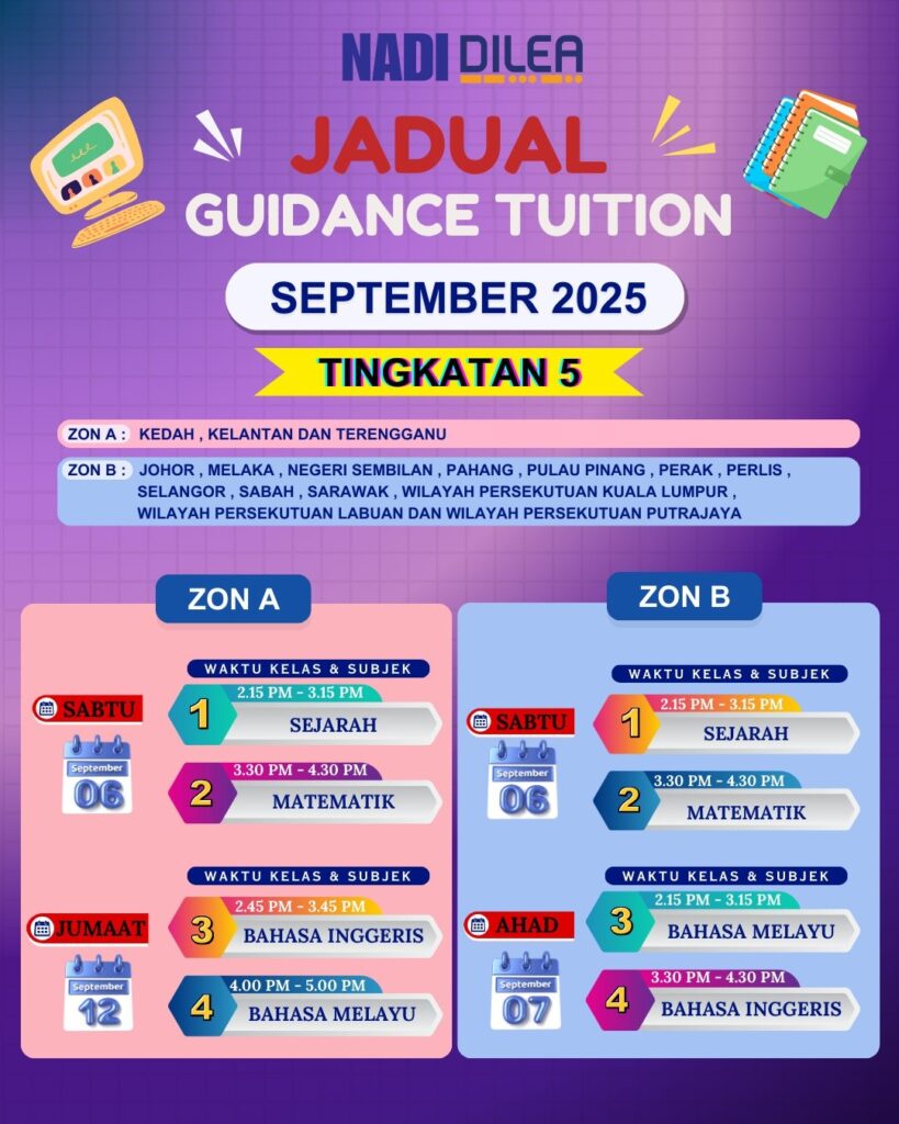 📌 Tingkatan 5 → Jumaat, Sabtu & Ahad (ikut zon)