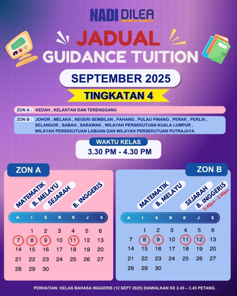 📌 Tingkatan 4 → Ahad – Jumaat (ikut zon)