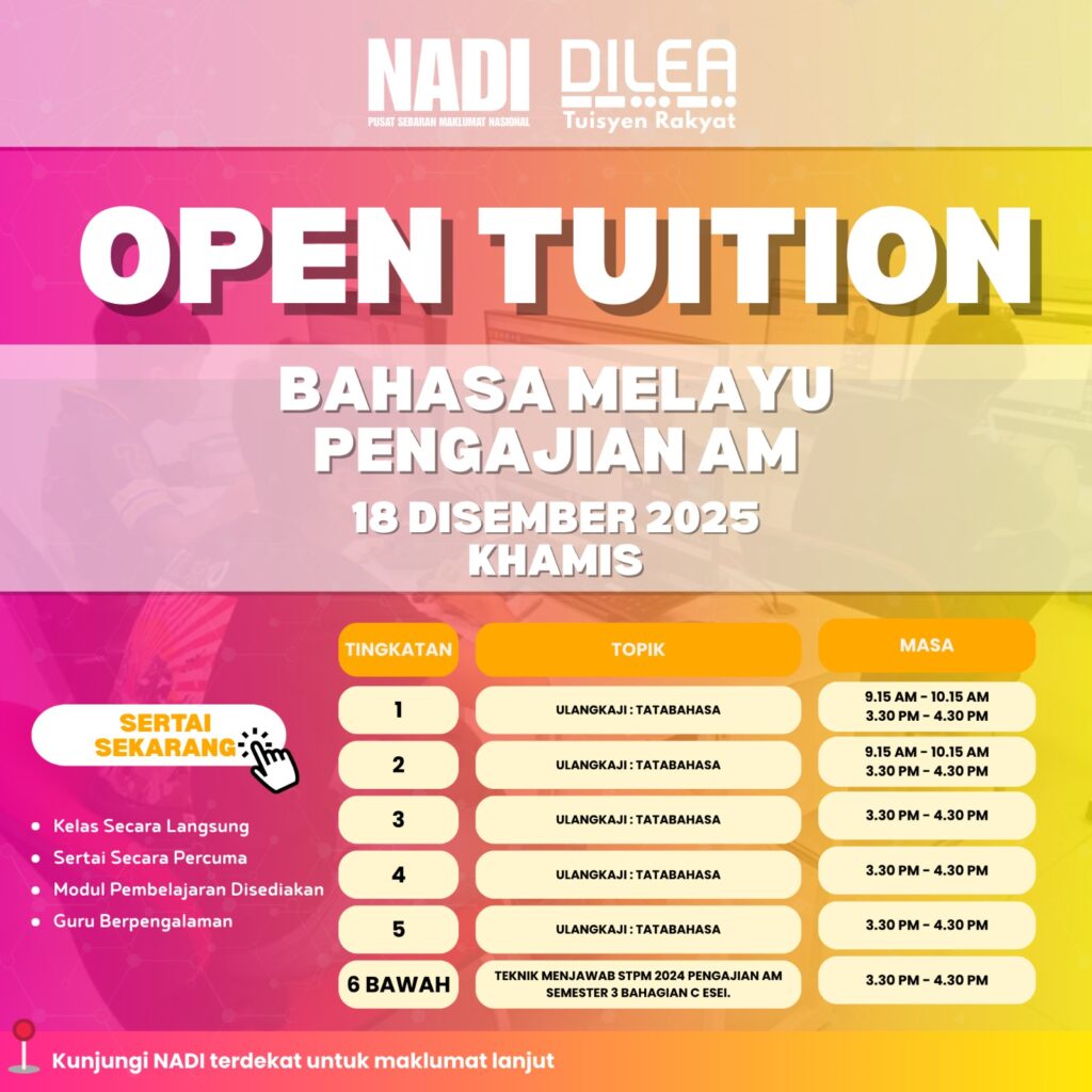 Jom sertai Open Tuition bersama NADI DILEA: Tuisyen Rakyat! 🚀