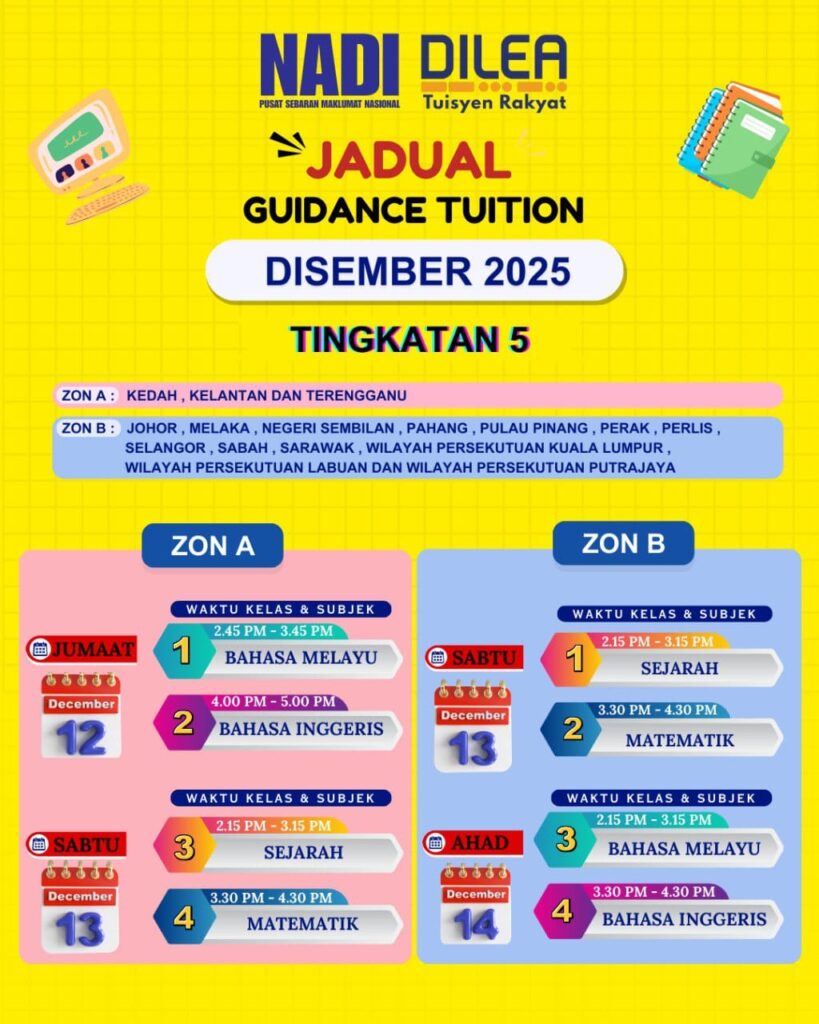 📌 Tingkatan 5 → Jumaat, Sabtu & Ahad (ikut zon)