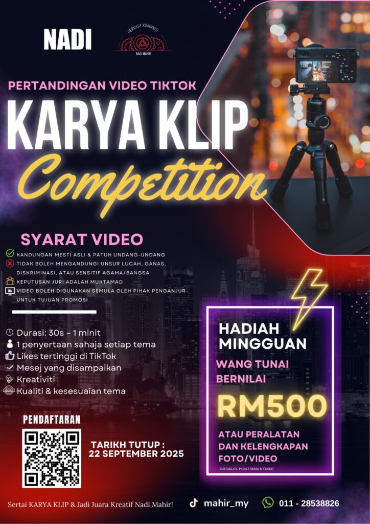 🎬✨Suka buat video pendek? Sertai Pertandingan Video TikTok – Karya Klip & menangi Hadiah Utama RM500 setiap minggu! 🚀